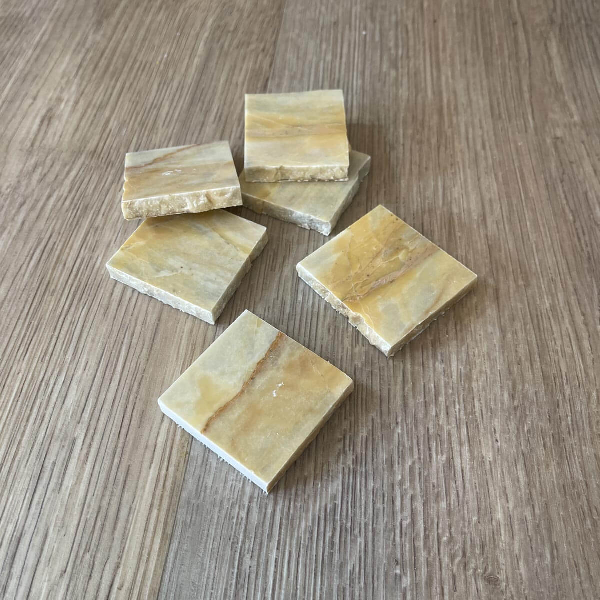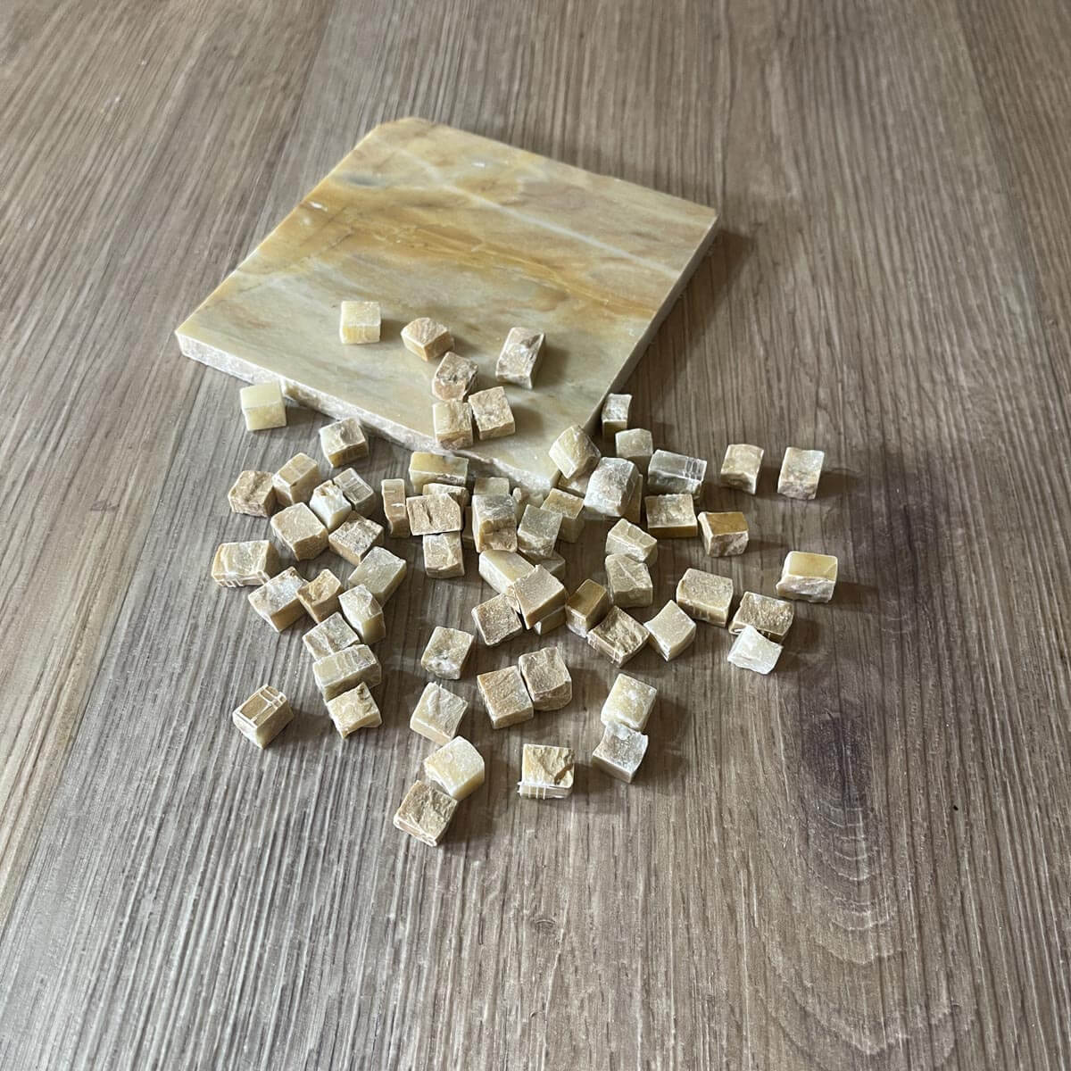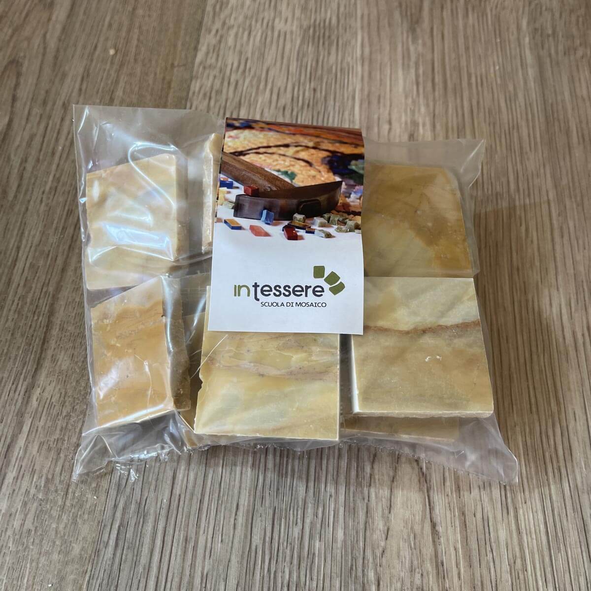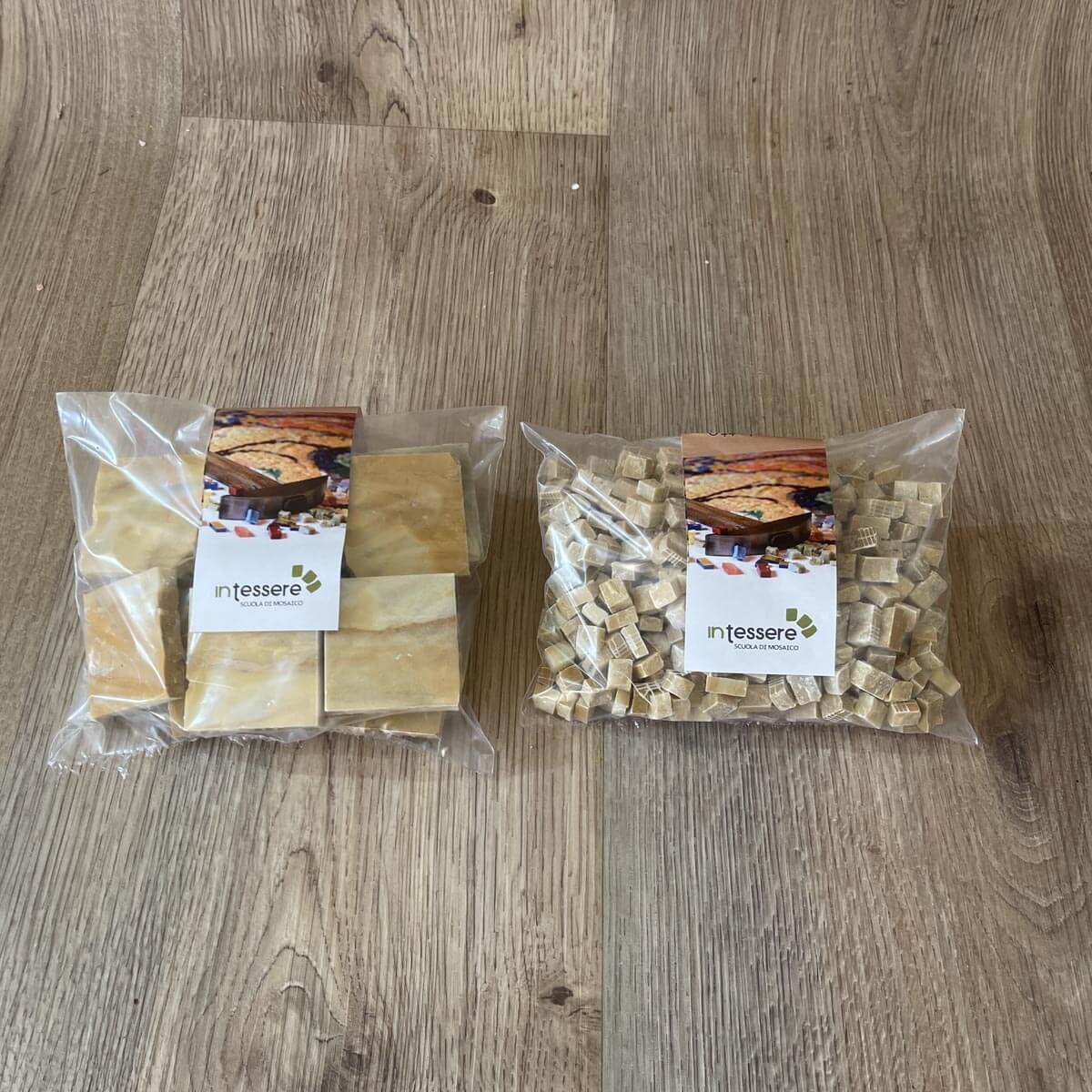 Mármol para construir mosaicos disponible en dos formatos y varios colores: teselas ya cortadas o losas para cortar autónomamente