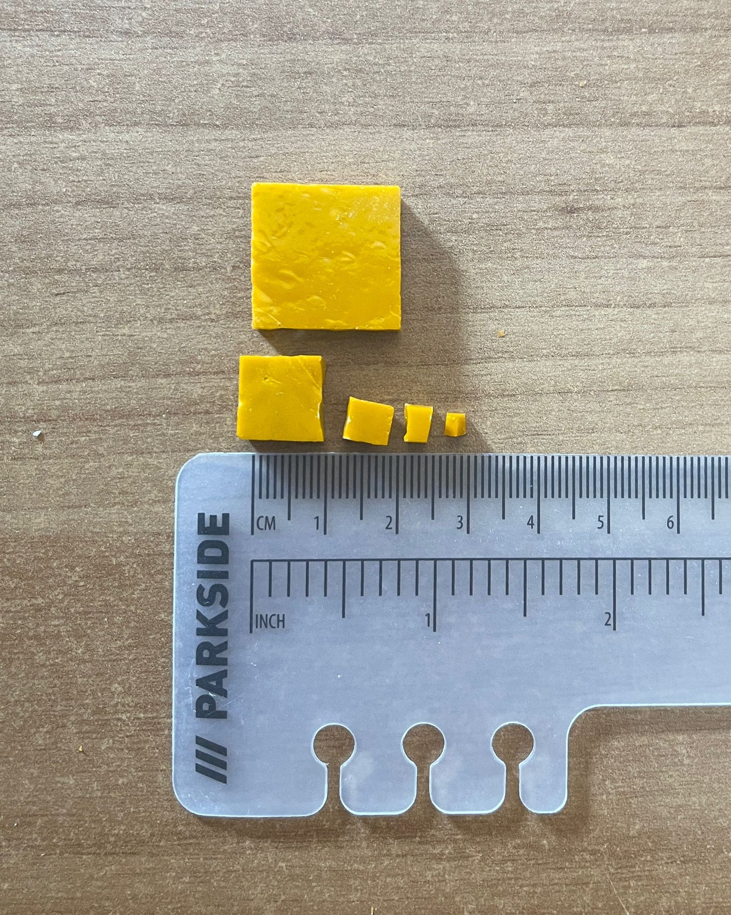 - 8 × 8 × 0,5 cm aproximadamente, para obtener otros formatos de teselas.