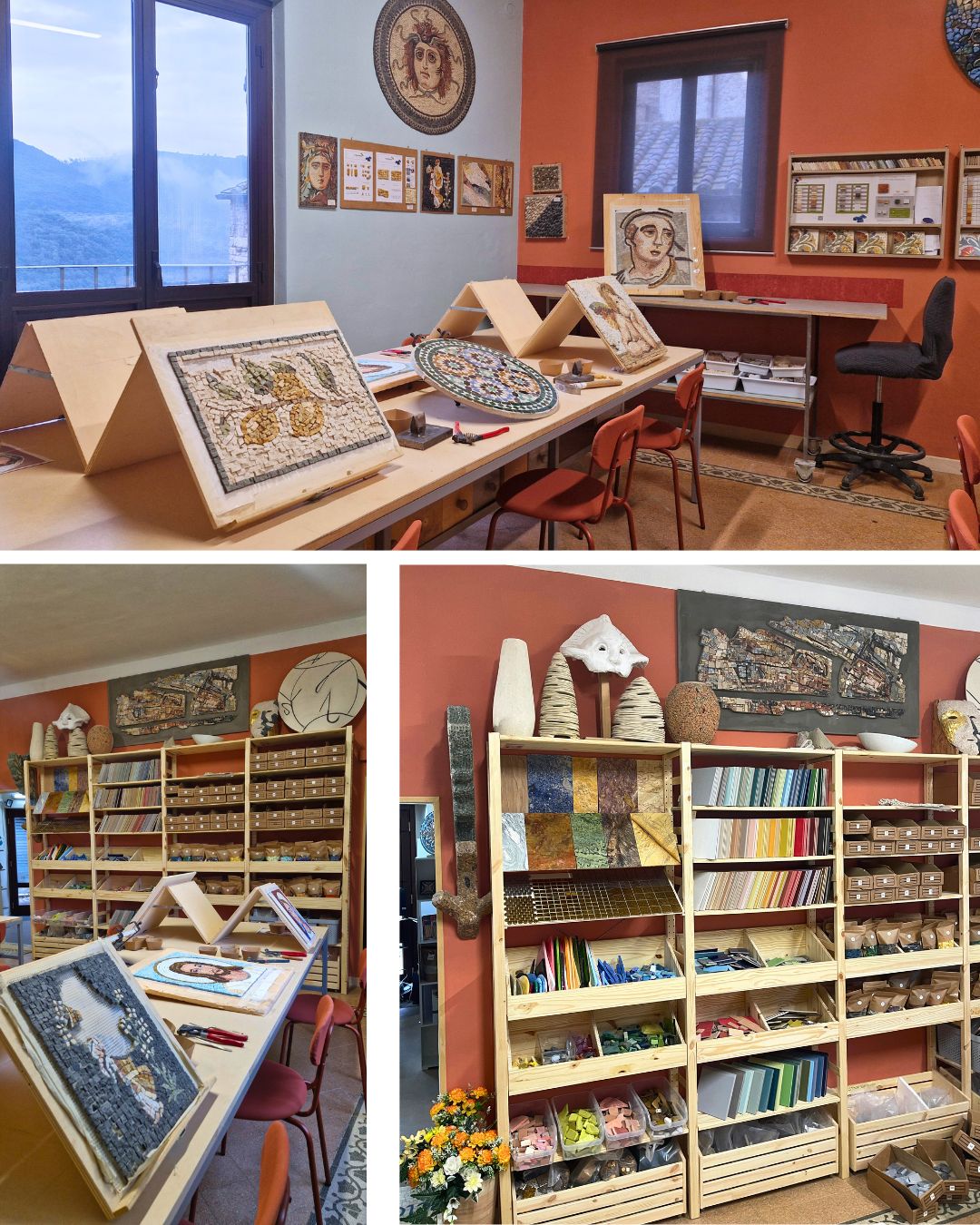 La escuela se convierte en un centro internacional para el estudio, el aprendizaje y el perfeccionamiento de todas las técnicas y estilos tradicionales, modernos y contemporáneos del arte del mosaico, a solo unos pasos de Roma.
